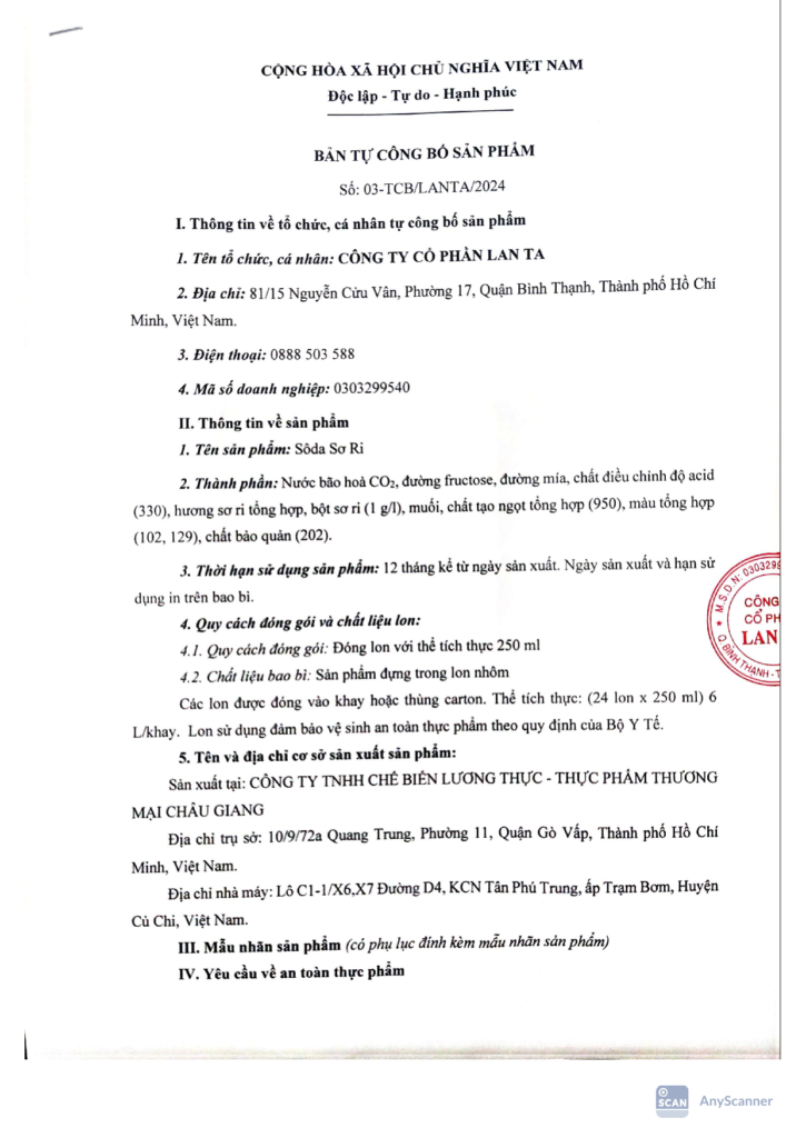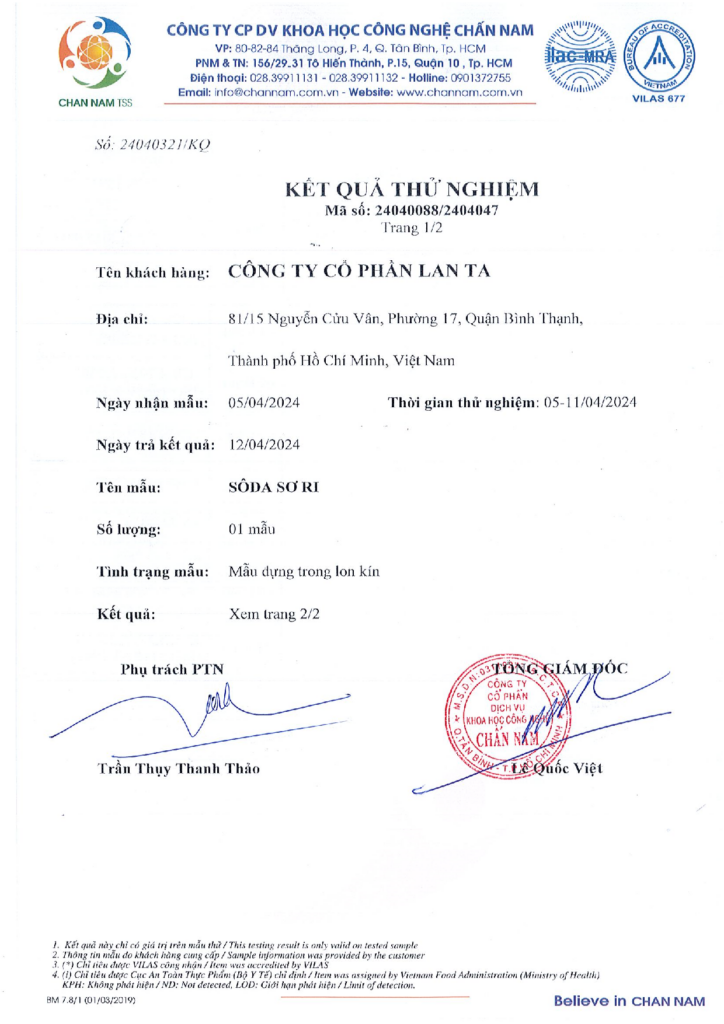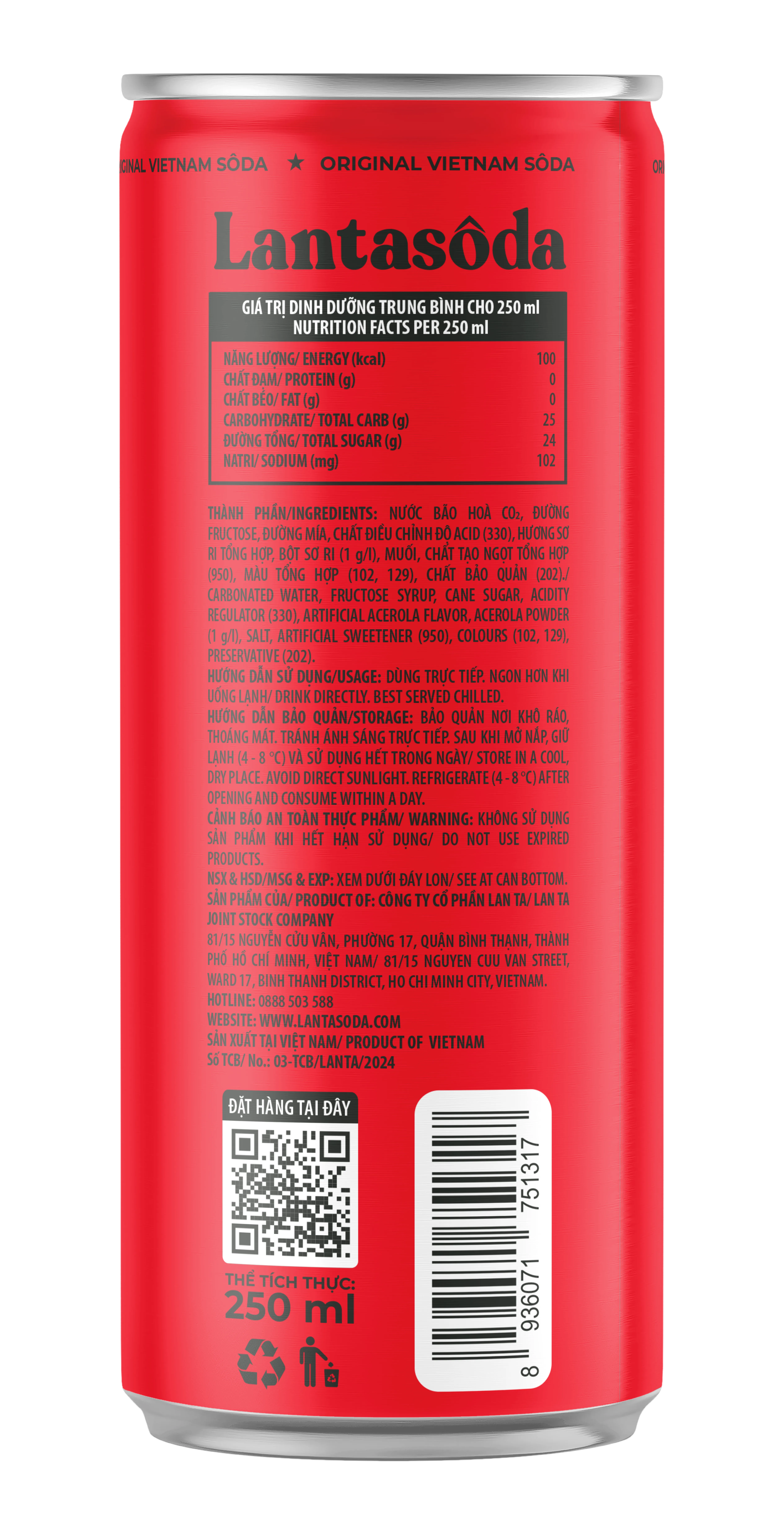 Được sản xuất tại Việt Nam bởi công ty Cổ phần Lan Ta, sản phẩm được đóng trong lon tiện lợi với dung tích 250ml.
